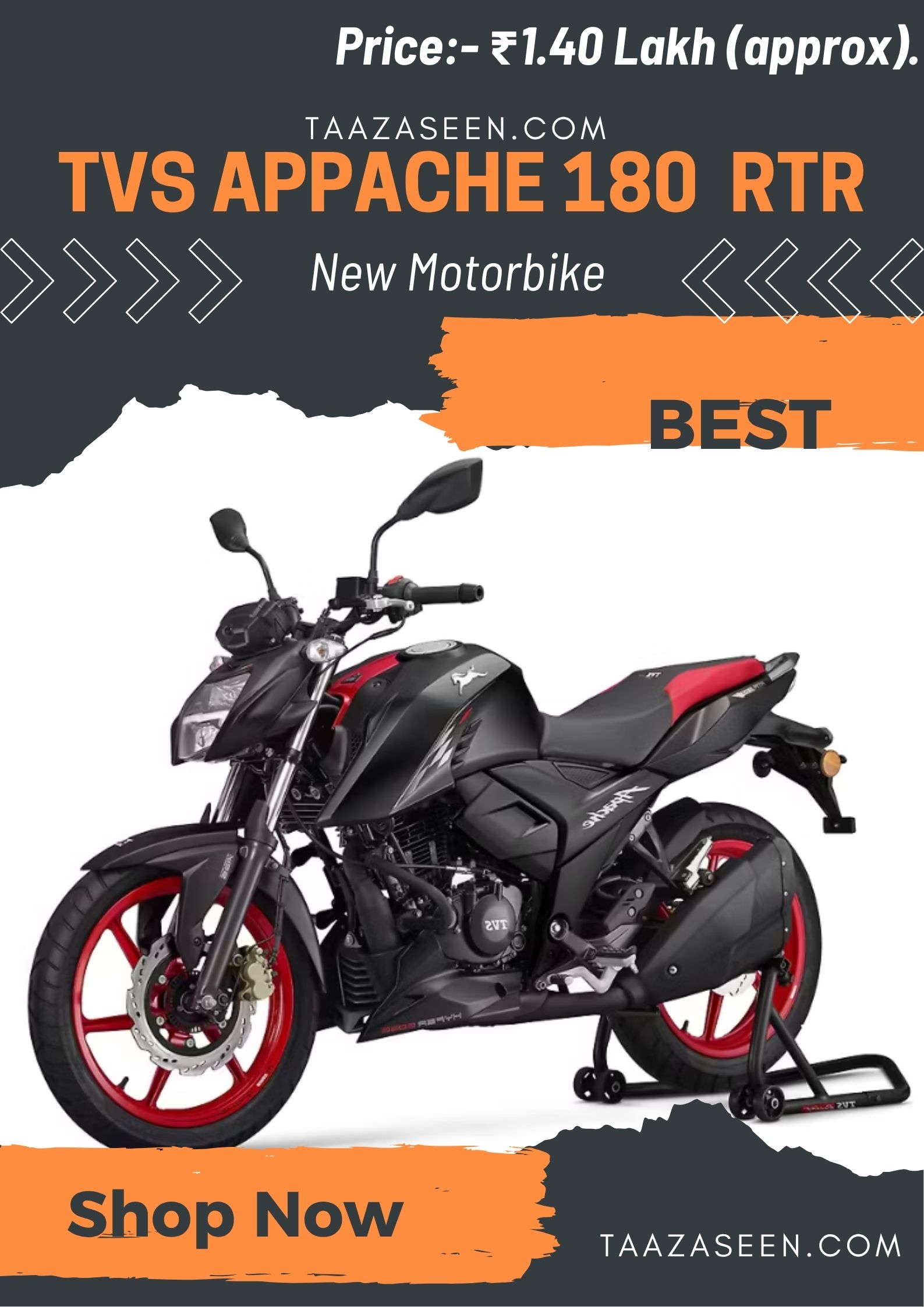 TVS Apache RTR 180: Speed, Style, рдХрдВрдЯреНрд░реЛрд▓! Racing рдХреА рдЬрд╛рди, рдЖрдкрдХреА рд╢рд╛рдиред рдЕрдкрд╛рдЪреЗ рдХрд╛ Powrful рдЗрдВрдЬрди рдХреЗ рд╕рд╛рдеред TVS рдХреА New рдЯреЗрдХреНрдиреЛрд▓реЙрдЬреА рдХреЗ рд╕рд╛рде рдзрдорд╛рдХреЗрджрд╛рд░ рдмрд╛рдЗрдХред